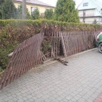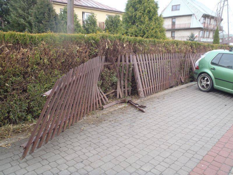 Uszkodzone ogrodzenie zostało zabezpieczone poprzez wniesienie zerwanego przęsła na posesję właściciela, natomiast pozostałą część i ostre krawędzie zostały oddzielone za pomocą taśmy ostrzegawczej.