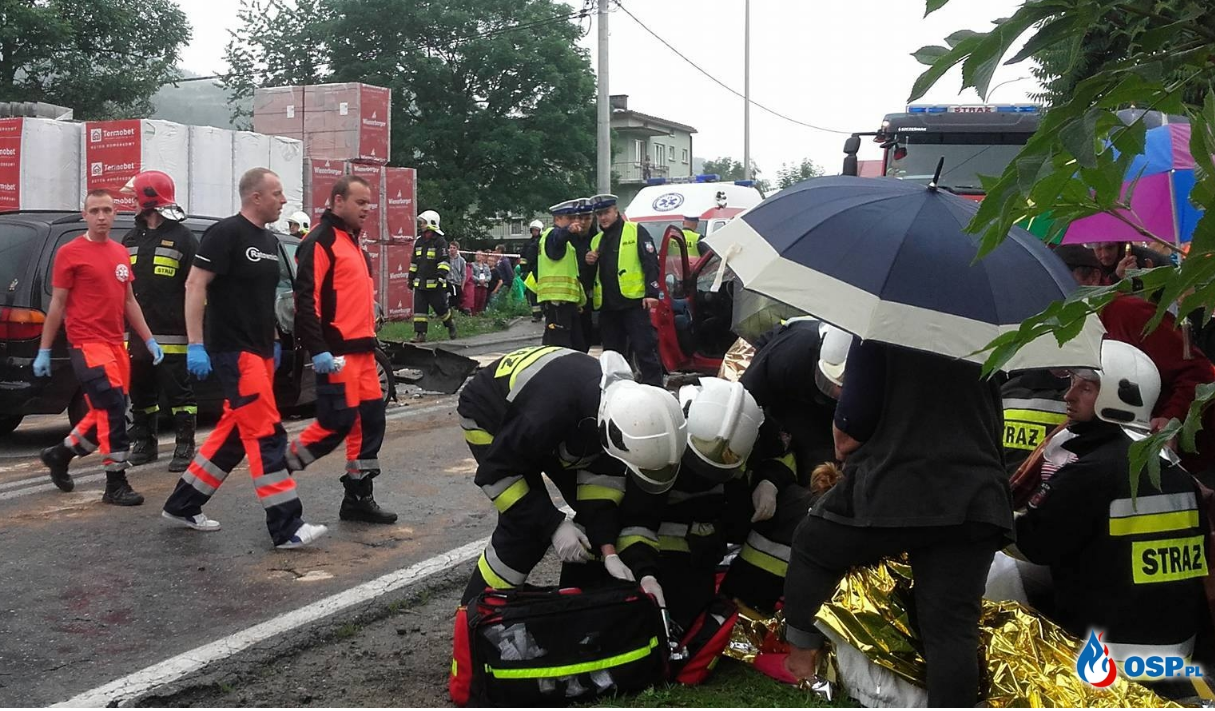 Na miejscu zdarzenia działały: OSP Kamienica, OSP Szczawa, PSP Limanowa, PSP Nowy Sącz, OSP Zabrzeż, OSP Czerniec, Śmigłowiec LPR, 8 zespołów Ratownictwa Medycznego i Policja.