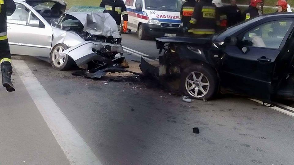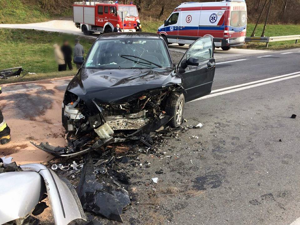 Czołówka w Jazowsku. Jedna osoba zakleszczona w pojeździe