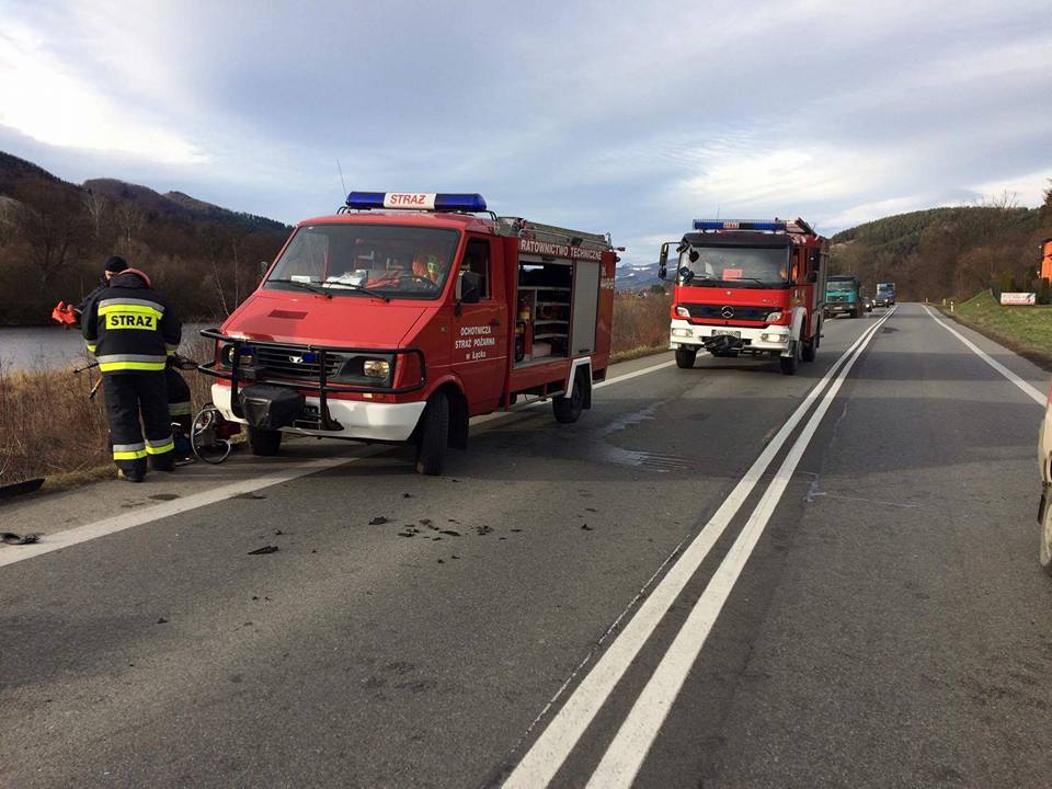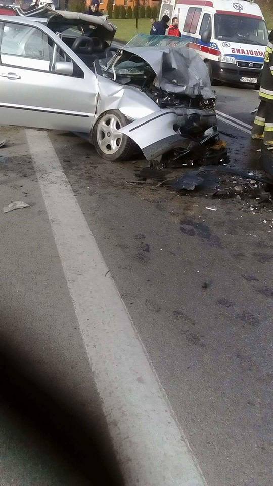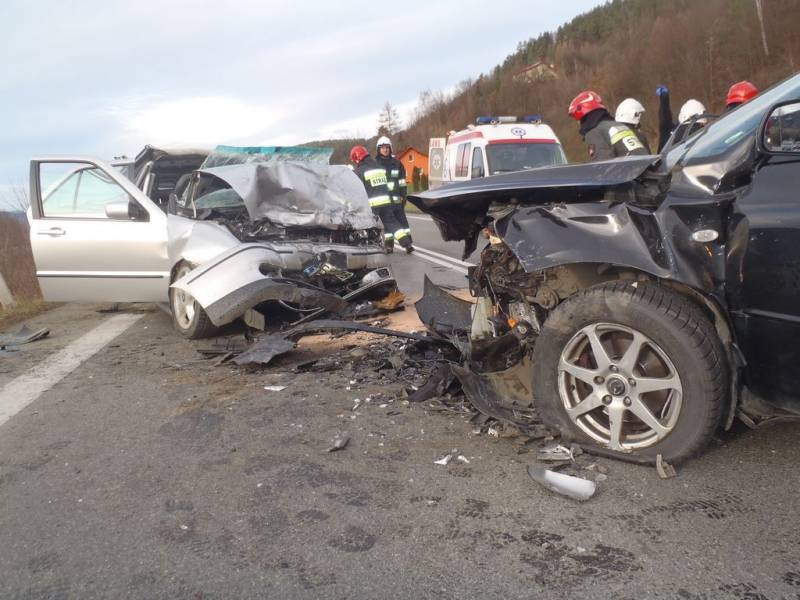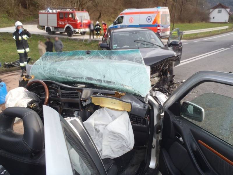 Dzisiaj (11 grudnia) o godzinie 12:04 na drodze wojewódzkiej 969 w Jazowsku (gmina Łącko) doszło do czołowego zderzenia dwóch samochodów osobowych marki Seat Toledo i Mazda. Jedna osoba została zakleszczona w pojeździe. Strażacy musieli wycinać dach, aby uwolnić kierowcę. Ostatecznie kierowcy obu pojazdów zostali przetransportowani do szpitala. Na miejscu pracowały służby ratunkowe: Straż Pożarna, Pogotowie Ratunkowe i Policja.