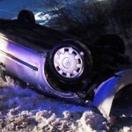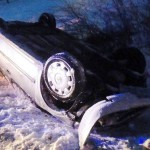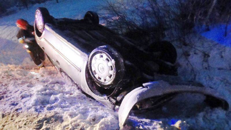 Wczoraj (9 luty) kilka minut po godzinie siedemnastej w dniu 9 lutego w Dąbrowie (gmina Chełmiec) samochód wypadł z drogi i dachował.