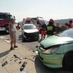 Droga krajowa była całkowicie zablokowana. Działania strażaków polegały na zabezpieczeniu miejsca zdarzenia oraz udzieleniu kwalifikowanej pierwszej pomocy osobom poszkodowanym. Rozłączono klemy akumulatorów w uszkodzonych samochodach osobowych. Strażacy udzielili pomocy ratownikom Pogotowia Ratunkowego w przemieszczeniu osób poszkodowanych z pojazdu na nosze typu deska a następnie do karetek pogotowia. Działania strażaków trwały godzinę.