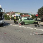 Po przybyciu na miejsce ustalono, że doszło do zderzenia trzech samochodów (tj dwóch samochodów osobowych oraz ciężarowego) na skrzyżowaniu dróg. W wyniku tego zdarzenia poszkodowane zostały dwie osoby z jednego samochodu osobowego.