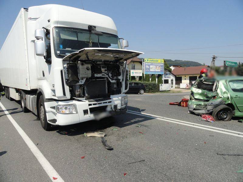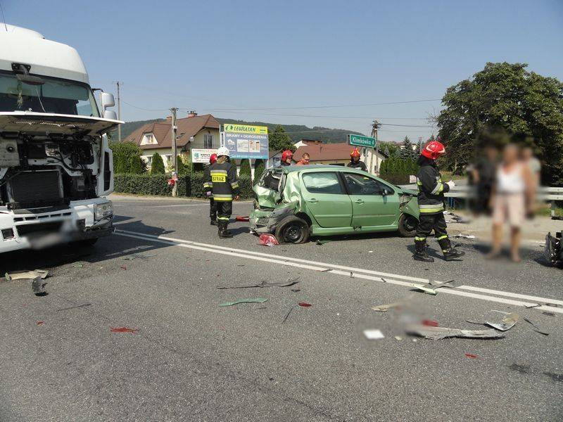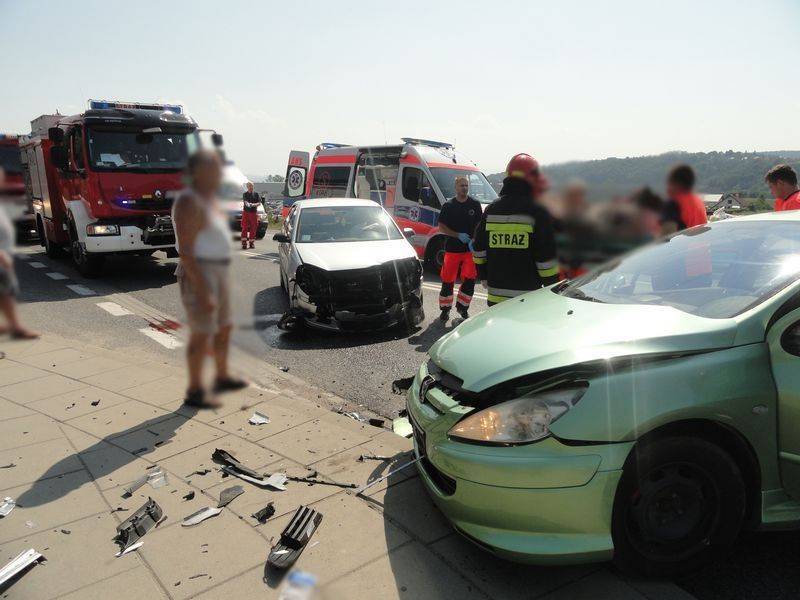 Po przybyciu na miejsce ustalono, że doszło do zderzenia trzech samochodów (tj dwóch samochodów osobowych oraz ciężarowego) na skrzyżowaniu dróg. W wyniku tego zdarzenia poszkodowane zostały dwie osoby z jednego samochodu osobowego.
