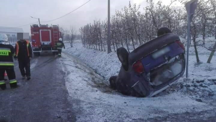 -Po przyjeździe na miejsce zdarzenia ustalono, iż samochód osobowy wypadł z jedni i dachował. Pojazdem podróżowała kobieta, która opuściła go o własnych siłach i została przekazana zespołowi karetki Pogotowia Ratunkowego – relacjonują strażacy z OSP Łącko.