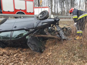 Dachowanie osobówki na obwodnicy Starego Sącza