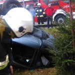 Po przyjeździe na miejsce zdarzenia stwierdzono, że dachował samochód osobowy, którym podróżowały cztery osoby. Osoby opuściły pojazd przed przyjazdem zastępów straży pożarnej i wszystkie zostały przewiezione na badania do szpitala.