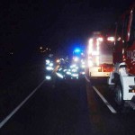 Pojazd znajdował się na dachu na środku jezdni w wyniku czego zablokowany został ruch pojazdów w obydwu kierunkach. Strażacy udzielili kwalifikowanej pierwszej pomocy osobie poszkodowanej, odłączono klemy akumulatora oraz oświetlono teren działań.Następnie pojazd został postawiony na koła i odholowany na prywatną posesje. Działania strażaków trwały ponad dwie godziny. Policja prowadzi czynności wyjaśniające.