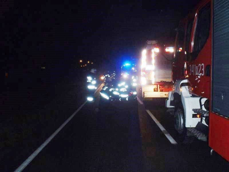 Pojazd znajdował się na dachu na środku jezdni w wyniku czego zablokowany został ruch pojazdów w obydwu kierunkach. Strażacy udzielili kwalifikowanej pierwszej pomocy osobie poszkodowanej, odłączono klemy akumulatora oraz oświetlono teren działań.Następnie pojazd został postawiony na koła i odholowany na prywatną posesje. Działania strażaków trwały ponad dwie godziny. Policja prowadzi czynności wyjaśniające.