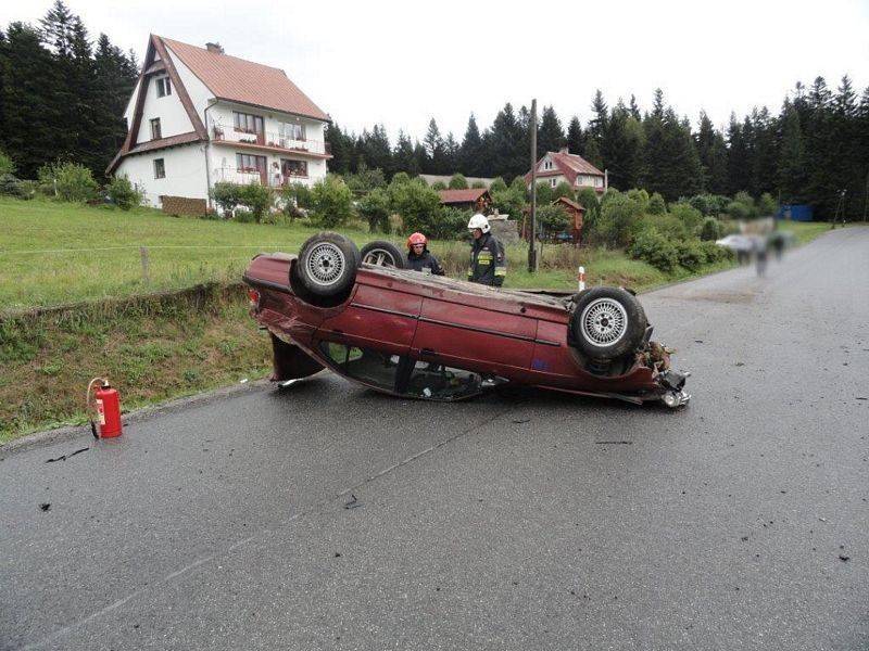 Dzisiaj (6 września) kilka minut przed godziną czternastą w Mochnaczce Wyżnej na drodze krajowej nr 75 doszło do dachowania samochodu osobowego. Pojazdem podróżowały dwie osoby, które opuściły pojazd przed przybyciem straży pożarnej.