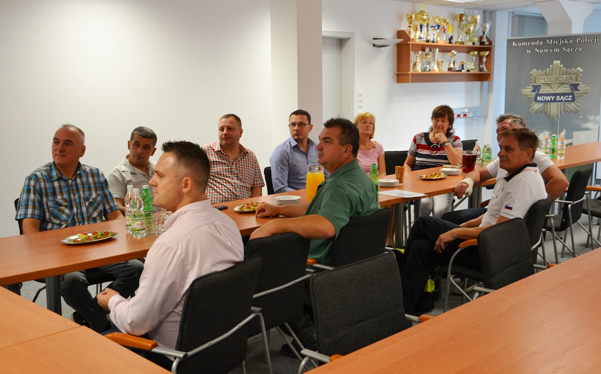 Spotkanie było okazją do rozmów i wymiany doświadczeń związanych z policyjną służbą w Polsce, Serbii, Czechach i w Słowenii. Delegaci poznali też obszar działania i strukturę organizacyjną komendy, zobaczyli strzelnicę, salę konferencyjną oraz serce komendy – czyli stanowisko kierowania. W trakcie spotkania wymieniono się doświadczeniami w zakresie spraw zawodowych, m.in. przestępczości, liczby policjantów i zakresu pracy poszczególnych wydziałów oraz wyposażenia i warunków służby. Goście zwrócili uwagę i pogratulowali doskonałych standardów i warunków pracy Komendy Miejskiej Policji w Nowym Sączu, będących ich zdaniem, na europejskim poziomie.