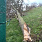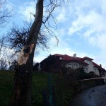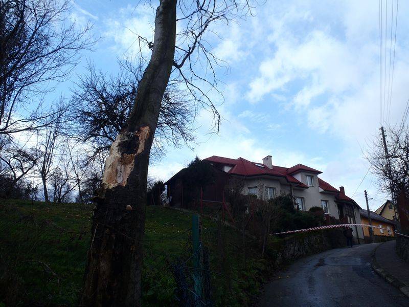 Szczególnie trudne i długotrwałe działania prowadzono własnie w Starym Sączu. Tam po przybyciu na miejsce działań strażaków OSP Stary Sącz oraz z JRG nr 2 w Nowym Sączu ustalono, że w wyniku silnego wiatru doszło do oderwania się części drzewa, która spadła na sąsiednią posesje. Pozostała część drzewa niebezpiecznie się pochylała w stronę ul. Stromej zagrażając przechodniom jak i mieszkańcom sąsiednich domów. Zadysponowano na miejsce pracowników zakładu energetycznego ponieważ druga odnoga drzewa zagrażała również linii energetycznej.