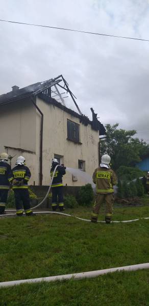 -Działania strażaków polegały na zabezpieczeniu miejsca zdarzenia, wprowadzeniu dwóch ratowników zabezpieczonych w sprzęt ochrony dróg oddechowych na poddasze budynku i podanie jednego prądu wody w natarciu –relacjonują strażacy – Po lokalizacji pożaru przystąpiono do prac rozbiórkowych. Usunięto słomę z poddasza. Rozebrano nadpaloną konstrukcję dachu oraz drewniany strop. Wszystkie nadpalone elementy po złożeniu w bezpiecznym miejsce przelano wodą. Zaopatrzenie wodne stanowiły przybyłe na miejsce zdarzenia samochody pożarnicze oraz hydrant znajdujący się na miejscu zdarzenia. Na miejsce przybyło Pogotowie Energetyczne. Po kontroli kamerą termowizyjną konstrukcji budynku i wykluczeniu zagrożenia, działania trwające ponad dwie godziny zakończono.