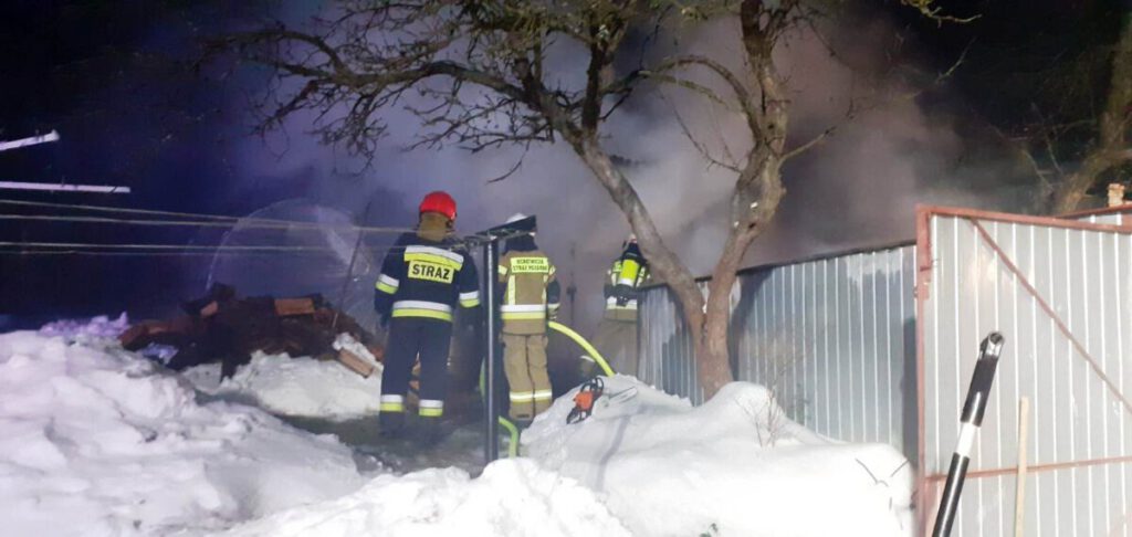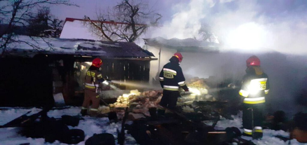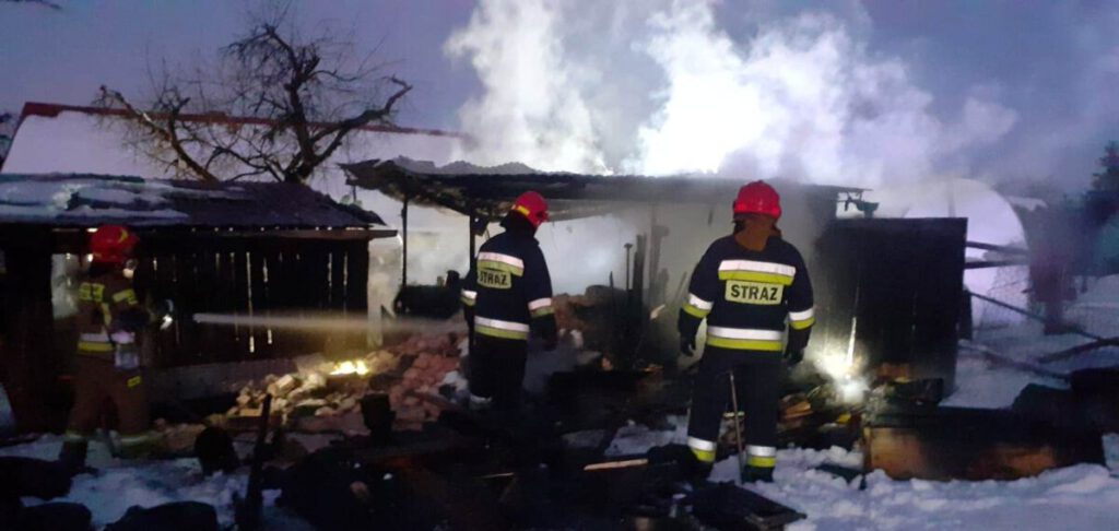 -Po przybyciu na miejsce zdarzenia ustalono, że paliła się drewniana szopa oraz wnętrze wiaty gospodarczej -relacjonują strażacy – W bezpośrednim sąsiedztwie znajdował się garaż typu blaszak wewnątrz, którego znajdował się samochód osobowy. Samochód został „ewakuowany” przed przybyciem zastępów straży. Wewnątrz garażu paliły się składowane urządzenia.
