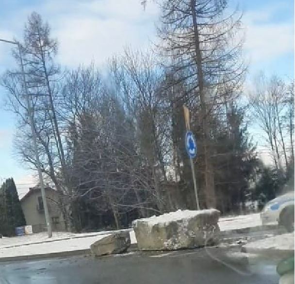 Kierowcy muszą liczyć z utrudnieniami na rondzie w Starym Sączu. Potężny kamień spadł z samochodu ciężarowego w momencie, gdy kierowca ruszał z miejsca -informują czytelnicy. Na szczęście kamień spadł na drogę i nikt nie ucierpiał. Policja kieruje ruchem.