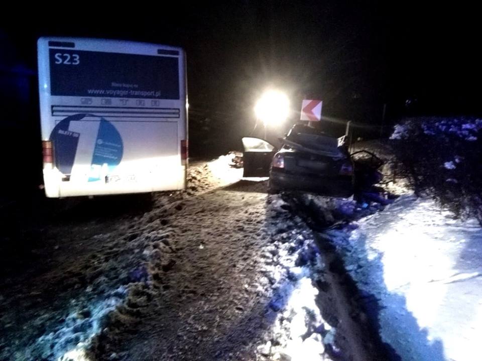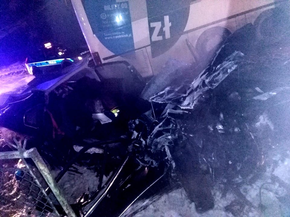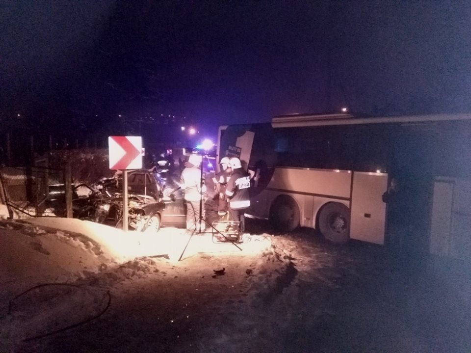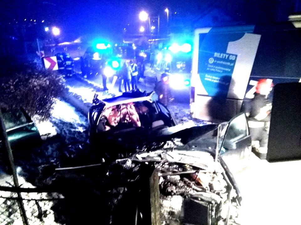 Grybów. Passat wpadł pod autobus. Cztery osoby ranne!
