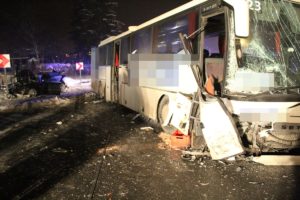 – Siła uderzenia była tak potężna, że wóz osobowy został zdruzgotany, a w autobusie wiozącym piętnaścioro pasażerów, nawet popękały przewody paliwowe – relacjonuje oficer dyżurny sądeckiej straży pożarnej –Droga była całkowicie zamknięta dla ruchu, aż do przybycia ciężkiego pojazdu holowniczego, który ściągnął rozbity autobus z jezdni.