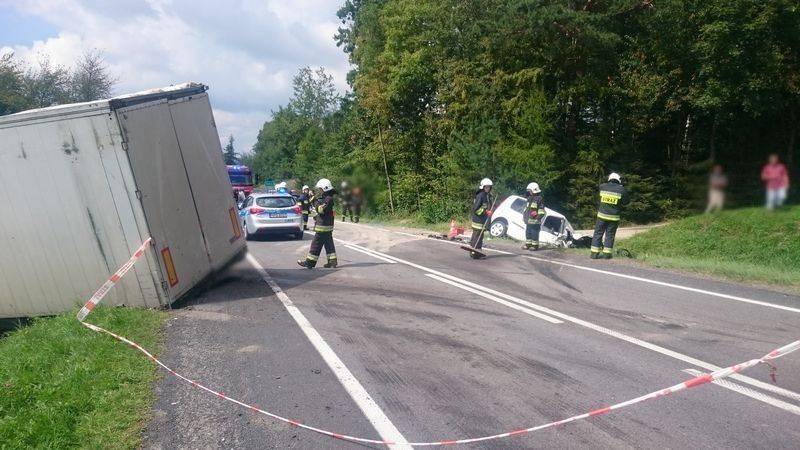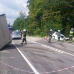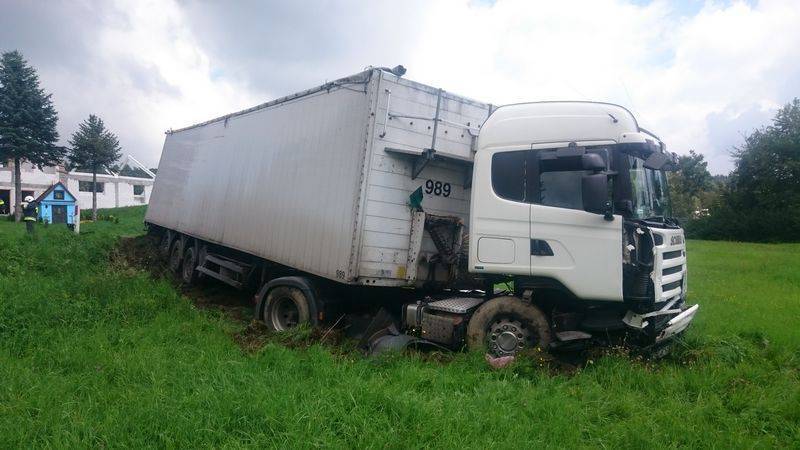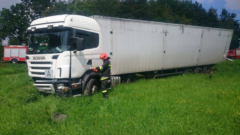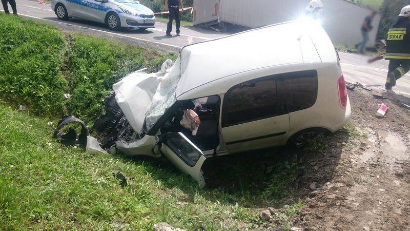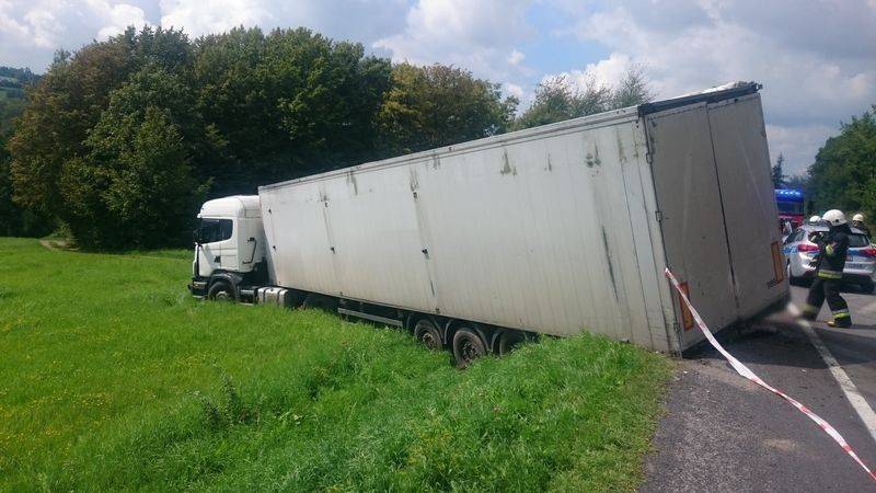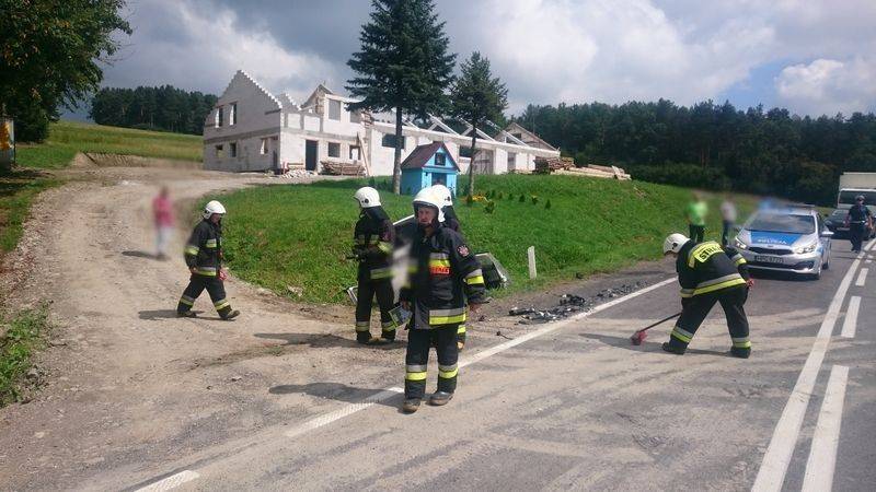 –Obydwa pojazdy znajdowały się poza drogą -mówi Marian Marszałek z PSP Nowy Sącz –Samochód ciężarowy wjechał na łąkę a tył naczepy był wryty w pobocze drogi i nasyp. Pojazd załadowany był deskami. Z kolei Skoda zjechała do przydrożnego rowu. Kierowca samochodu ciężarowego nie uskarżał się na żadne dolegliwości. Poinformowano GDDKiA o uszkodzeniu pobocza drogi krajowej a z kierowcą samochodu ciężarowego uzgodniono, że rozładunek i wyciągnięcie pojazdu z łąki wykona właściciel firmy. Działania strażaków trwały ponad godzinę.