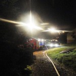 Po zlokalizowaniu pożaru przystąpiono do rozbiórki pokrycia dachowego oraz usunięciu siana i słomy a następnie jej dogaszeniu. Gaszenie pożaru przez 9 zstępów i prawie 50 strażaków trwało ponad trzy godziny.