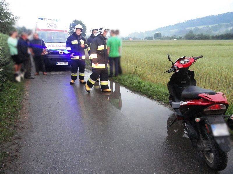 W niedziele 28 czerwca wieczorem zastęp z JRG nr 1 w Nowym Sączu oraz z OSP Kąclowa prowadził działania w Kąclowej. Po przybyciu na miejsce zdarzenia  stwierdzono, że  w zdarzeniu brał udział skuter, którym podróżowały dwie osoby.