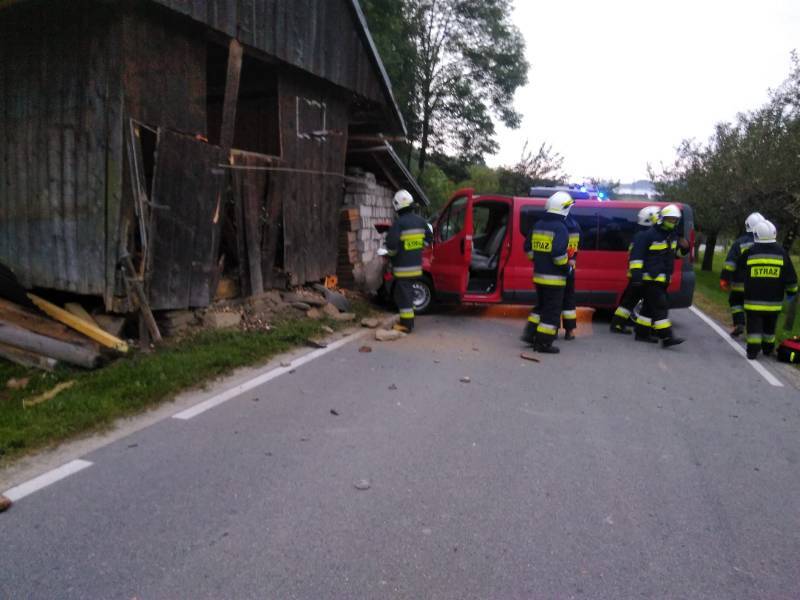 –Po przybyciu na miejsce zdarzenia ustalono, iż przed samochodem przebiegła sarna co zmusiło kierowcę do gwałtownego manewru -relacjonują strażacy -w wyniku tego samochód uderzył w róg budynku gospodarczego, naruszając jego konstrukcję. Pojazdem podróżował sam kierujący, który opuścił samochód przed przybyciem zastępów straży i nie uskarżał się na żadne dolegliwości. Działania strażaków polegały na zabezpieczeniu miejsca zdarzenia, odłączeniu akumulatorów oraz ściągnięciu uszkodzonego samochodu na pobocze drogi przy pomocy wciągarki samochodowej. Następnie usunięto z jezdni pozostałości powypadkowe i dokonano sorpcji płynów eksploatacyjnych. Budynek gospodarczy został odgrodzony taśmą ostrzegawczą przed osobami postronnymi.