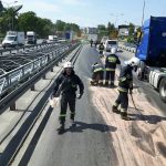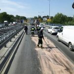 -Po przybyciu na miejsce zdarzenia ustalono, że na drodze znajdowała się rozlana substancja ropopochodna tj. olej napędowy. Plama była o szerokości 1,5 m na długości około 1 km -mówi Marian Marszałek z PSP Nowy Sącz – Wyciek nastąpił z autobusu, który miał awarie układu zasilającego w paliwo i znajdował się na parkingu wraz z patrolem Policji na ul. Piłsudskiego tj. około 1 km od początku plamy. Działania strażaków polegały na zabezpieczeniu miejsca zdarzenia i dokonaniu sorpcji oraz neutralizacji rozlanej substancji ropopochodnej. Działania trwały 1,5 godziny.