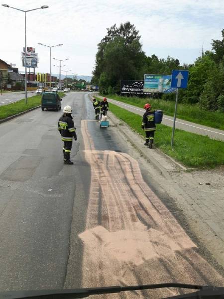 -Po przybyciu na miejsce zdarzenia ustalono, że na drodze znajdowała się rozlana substancja ropopochodna tj. olej napędowy. Plama była o szerokości 1,5 m na długości około 1 km -mówi Marian Marszałek z PSP Nowy Sącz – Wyciek nastąpił z autobusu, który miał awarie układu zasilającego w paliwo i znajdował się na parkingu wraz z patrolem Policji na ul. Piłsudskiego tj. około 1 km od początku plamy. Działania strażaków polegały na zabezpieczeniu miejsca zdarzenia i dokonaniu sorpcji oraz neutralizacji rozlanej substancji ropopochodnej. Działania trwały 1,5 godziny.