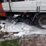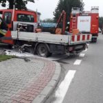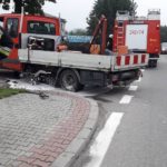 -Kierujący motocyklem znajdował się w pozycji siedzącej oparty o samochód dostawczy. Został poszkodowany –relacjonują strażacy -Działania zastępu OSP polegały na zabezpieczeniu terenu działań, udzieleniu kwalifikowanej pierwszej pomocy poszkodowanemu oraz kierowaniu wahadłowo ruchem. Dodatkowo stwierdzono, że w samochodzie dostawczym podróżowało pięć osób, nikt z nich nie uskarżał się na dolegliwości. Po przybyciu na miejsce karetki Pogotowia ratunkowego przekazano poszkodowanego załodze Pogotowia i udzielono pomocy w transporcie do karetki.Działania strażaków trwały prawie dwie godziny.