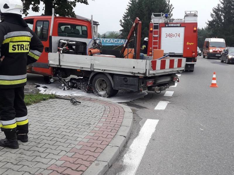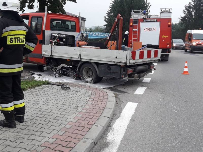23 sierpnia około godziny 6.36 służby ratunkowe wezwane zostały do wypadku w Klęczanach. Zderzył się tam samochód dostawczy i motocykl. Poszkodowany został motocyklista.