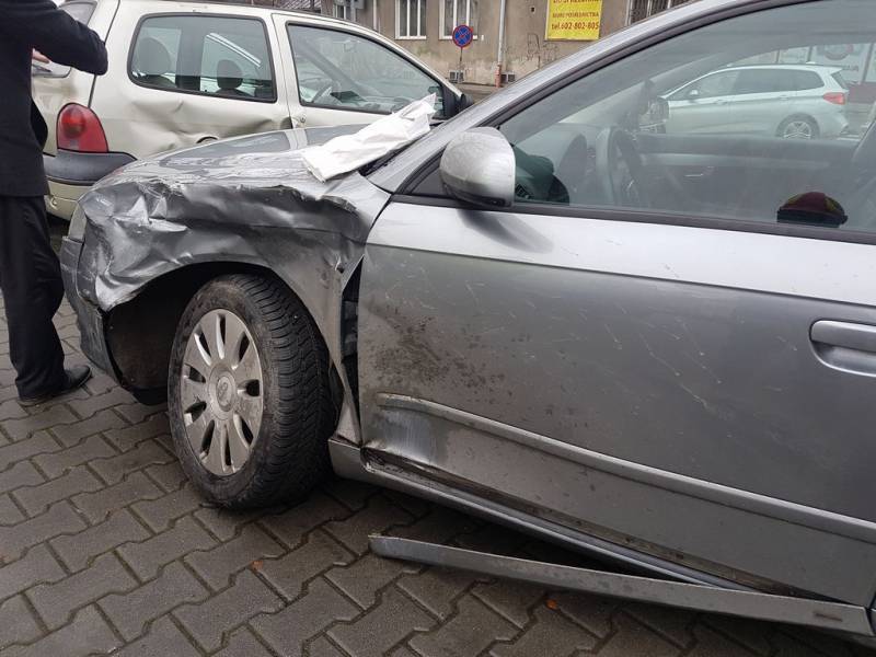 Jedna osoba poszkodowana, uszkodzone barierki i elewacja budynku oraz 2 samochody na parkingu urzędu….to skutki wczorajszego zderzenia 2 samochodów, w tym jednego dostawczego, na ul. Jagiellońskiej przy Urzędzie Wojewódzkim. Pojazdami podróżowali sami kierowcy.