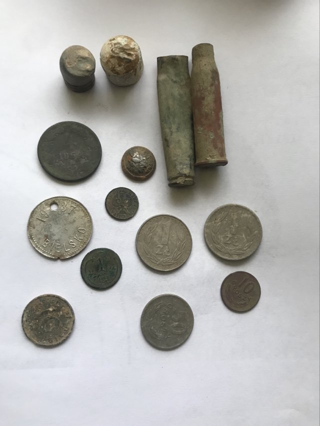 Dzisiaj poszukiwacze po raz kolejny wyruszyli w teren. Oprócz złomu, łusek i paru monet oraz zawieszki dla psa z napisem „1937 BIELSKO” znaleźli niewybuch. Na miejsce udał się patrol policji, który zabezpiecza teren, aż do czasu przyjazdu wojskowej grupy saperskiej z Krakowa.