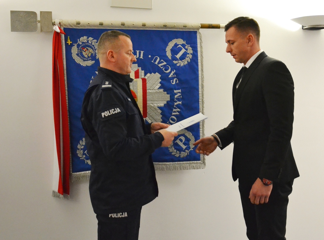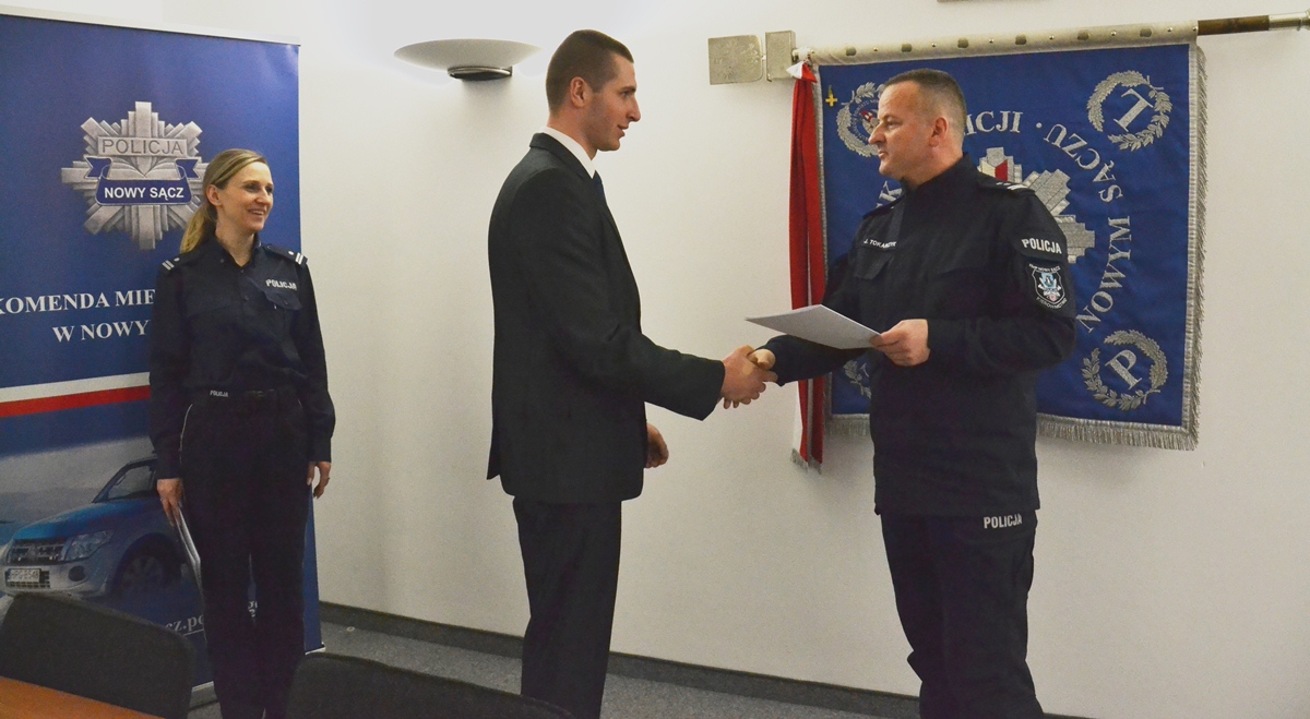 – Gratuluję wam pozytywnego przejścia procedury kwalifikacyjnej i cieszę się, że trafiliście do naszej jednostki. Mam nadzieję, że kurs na który zostajecie skierowani również przejdziecie z wynikiem pozytywnym i spotkamy się tutaj ponownie za kilka miesięcy – mówił do nowych policjantów Komendant Miejski Policji w Nowym Sączu.