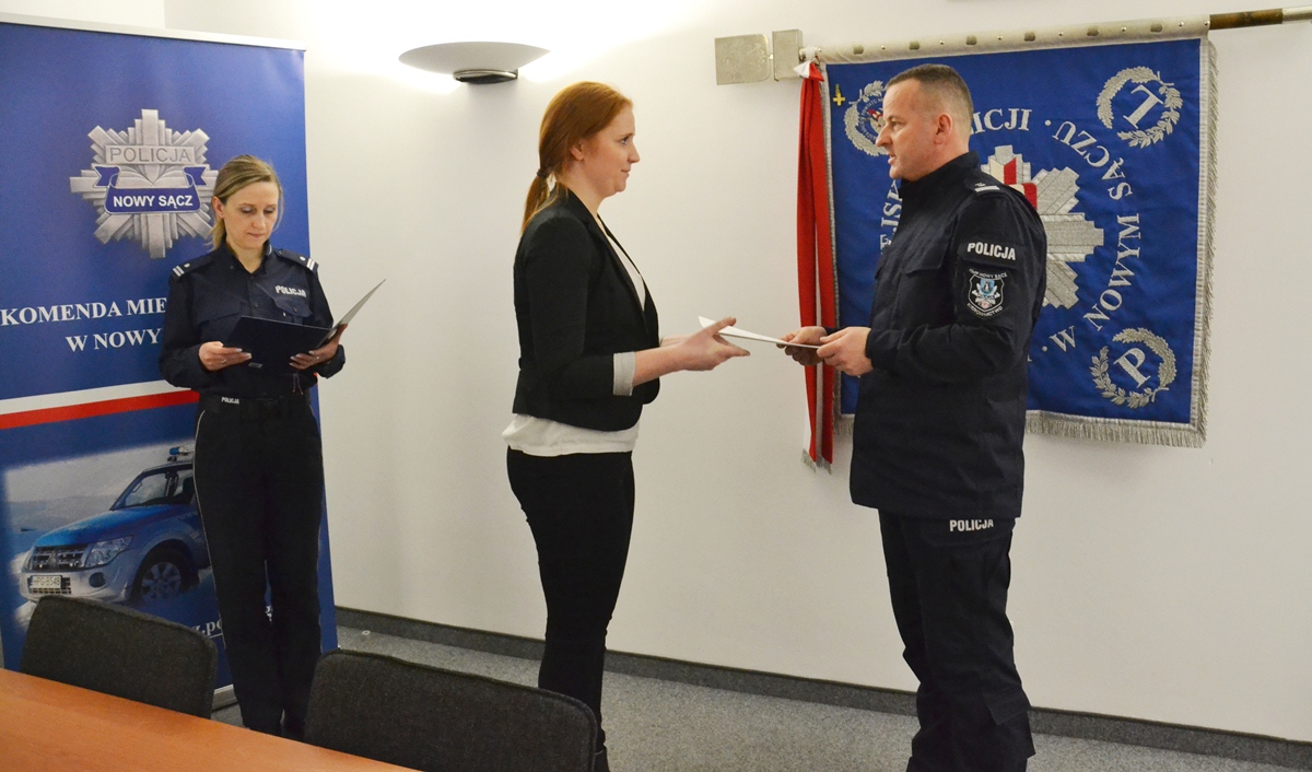 20 marca br. szeregi Komendy Miejskiej Policji w Nowym zasiliło dziewięciu nowych funkcjonariuszy. Rozkazy personalne o przyjęciu do Policji odebrali z rąk Komendanta Miejskiego Policji w Nowym Sączu – mł. insp. Jarosława Tokarczyka.