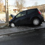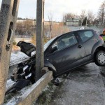 –około 6.45 w miejscowości Korzenna na drodze powiatowej kierująca pojazdem marki Citroen, na łuku drogi prawdopodobnie nie dostosowała prędkości do panujących warunków na drodze i na oblodzonej nawierzchni straciła panowanie nad pojazdem.W efekcie uderzyła w betonową barierę.Kierująca została przewieziona do szpitala na dalsze badania.