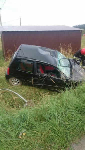 6 sierpnia kilka minut po godzinie 16:00 służby ratunkowe mknęły do wypadku w Korzennej, gdzie samochód osobowy VW Lupo wypadł z drogi i znajdował się w fosie na kołach.