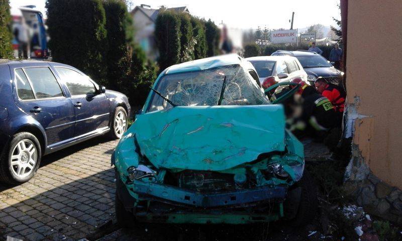 Korzenna. Stracił panowanie nad Oplem. Uszkodził ogrodzenie, budynek i 3 auta!