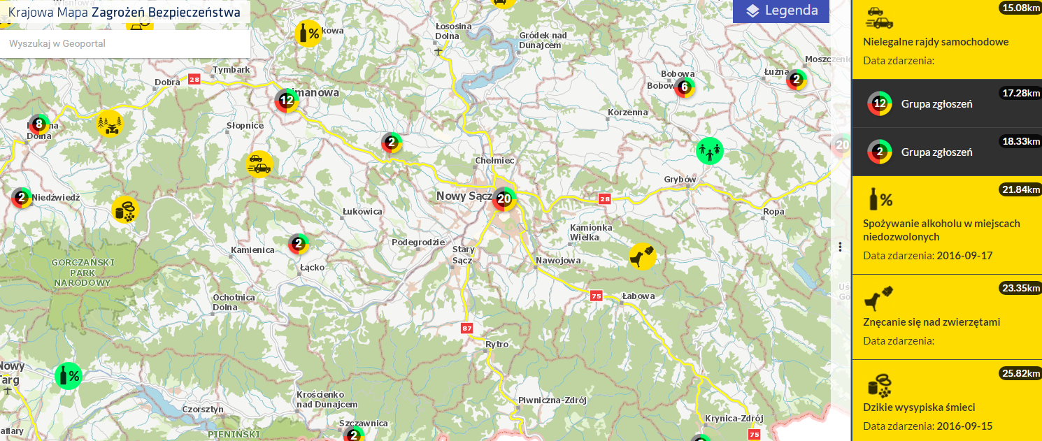 Na stronie internetowej Komendy Miejskiej Policji w Nowym Sączu dostępna jest już aplikacja „Krajowa Mapa Zagrożeń Bezpieczeństwa. Dzięki temu innowacyjnemu narzędziu internetowemu, mieszkańcy mogą dzielić się spostrzeżeniami dotyczącymi wszelkich zagrożeń występujących w ich sąsiedztwie.