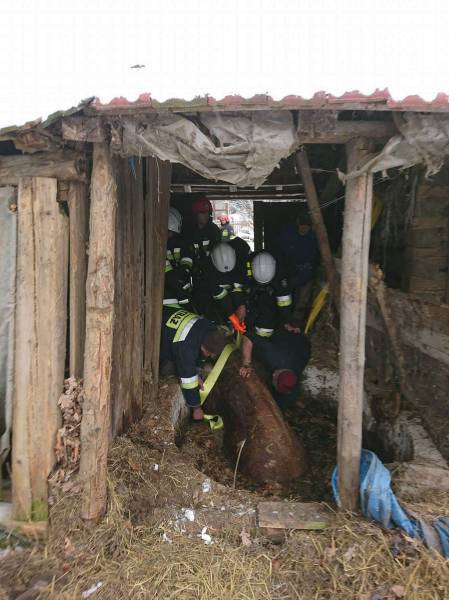 22 stycznia około godziny 11.43 strażacy wezwani zostali do uwięzionej krowy w Mystkowie.