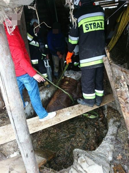 Krowa wpadła do silosu. Na ratunek ruszyli strażacy