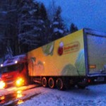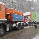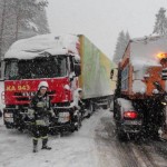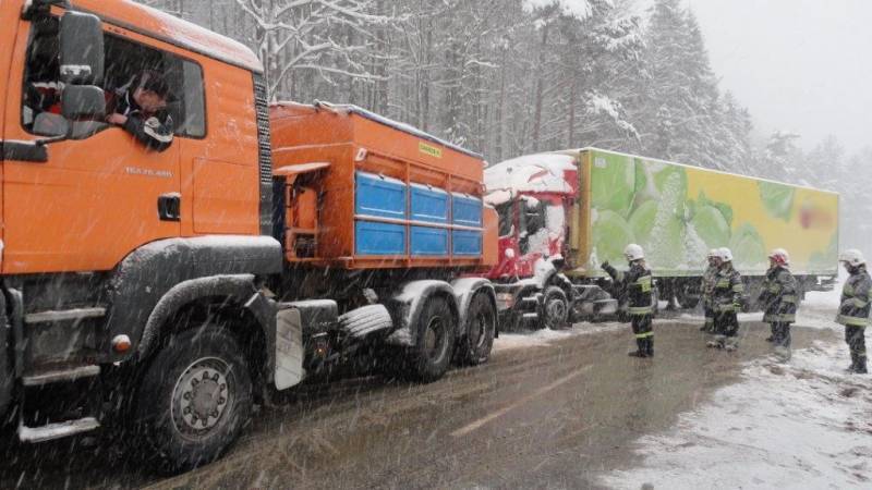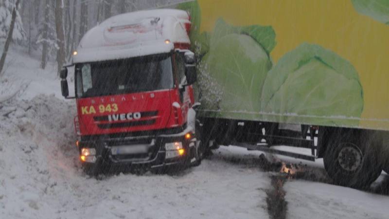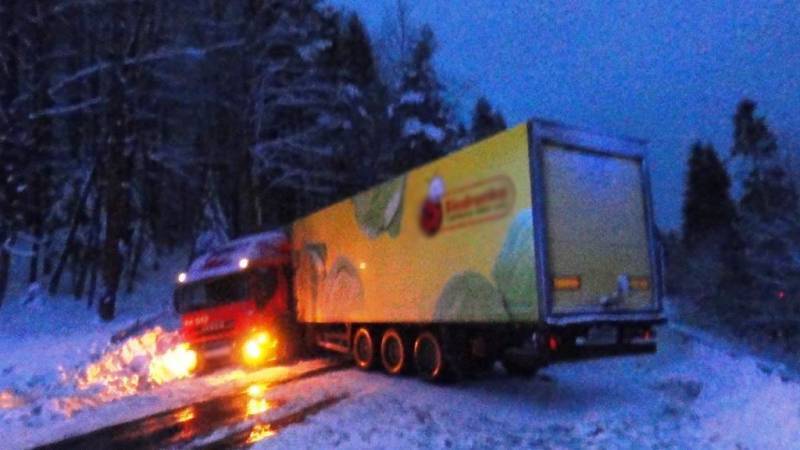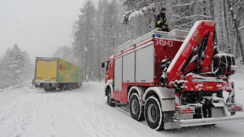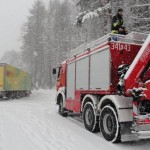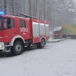 Strażacy z JRG w Krynicy Zdroju po przybyciu na miejsce zdarzenia ustalili, że w poprzek drogi znajdował się samochód ciężarowy- ciągnik siodłowy z naczepą. W wyniku poślizgu samochód uderzył w skarpę. Samochód wraz z przyczepą blokował obydwa pasy ruchu drogi krajowej 75.