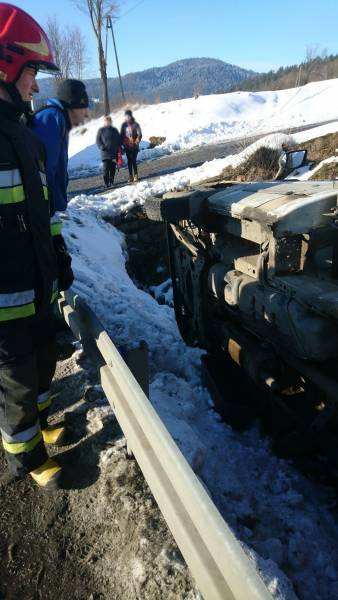 –Doszło tam do zdarzenia drogowego z udziałem samochodu osobowego Subaru i pojazdu specjalnego -autolaweta Ford Transit -mówi rzecznik sądeckich strażaków –Kierujący samochodem specjalnym, aby uniknąć najechania na tył samochodu osobowego Subaru, zjechał gwałtownie na pobocze, po czym przewrócił się na prawy bok. Na samochodzie specjalnym znajdował się wrak pojazdu wieziony na złomowisko w Nowym Sączu. Pojazdem specjalnym podróżowała jedna osoba, pojazdem osobowym podróżowały dwie osoby. Uczestnicy zdarzenia nie zgłaszali żadnych dolegliwości. Ruch na drodze odbywał się wahadłowo.