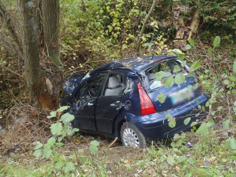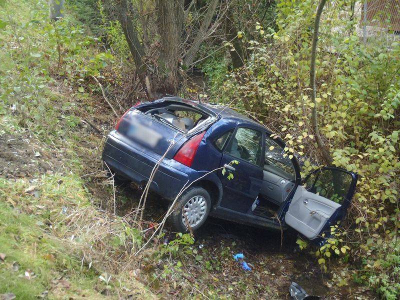 Łazy Biegonickie – samochód osobowy wypadł z drogi