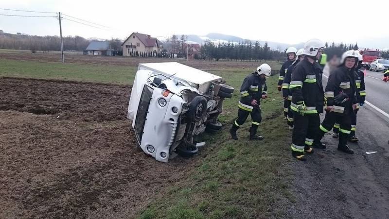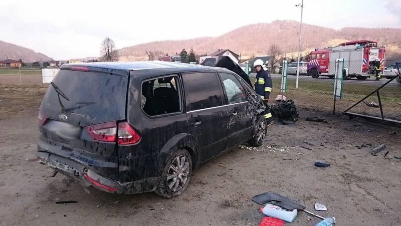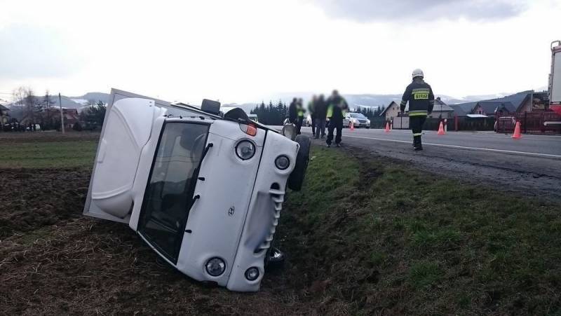 Wczoraj (27 luty) około godz. 13:50 w miejscowości Łososina Dolana na drodze krajowej K-75 doszło do wypadku drogowego z udziałem dwóch samochodów osobowego i ciężarowego. Kierujący samochodem marki Ford podczas wyprzedzania pojazdów zderzył się z samochodem marki Hyundai, który wykonywał manewr skrętu w lewo. Następnie po uderzeniu samochód marki Ford uderzył w betonowy przepust i wjechał na pobliską posesję.