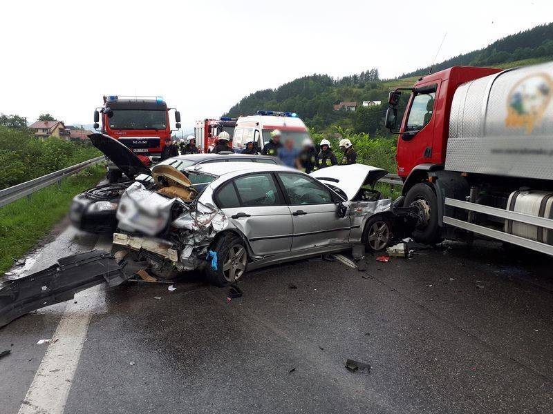W międzyczasie, również w Maszkowicach, jednak po godzinie 11.00, kierujący samochodem ciężarowym marki DAF, najechał na tył poprzedzającego go pojazdu marki BMW, który w wyniku uderzenia został popchnięty do przodu i uderzył w znajdujące się przed nim audi. Wszyscy uczestnicy zdarzenia byli trzeźwi, a kierowca BMW trafił do szpitala. W tym przypadku, również za spowodowanie zagrożenia bezpieczeństwa w ruchu drogowym, mandat karny trafił w ręce kierowcy samochodu ciężarowego.