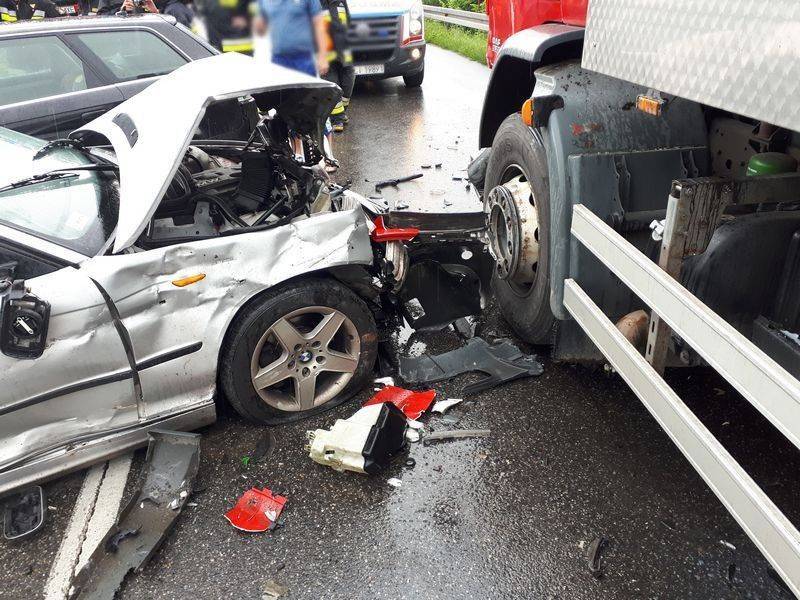 Skończ chrzanić. Czasami wystarczy zrobić reanimacje i już człowiek wraca do normalnych funkcji życiowych. A to ze miał koła skręcone to wystarczyło lekkie pchniecie i już jest na przeciwnym pasie. Gdyby jechał szybko to przod BMW by trochę gorzej wyglądał