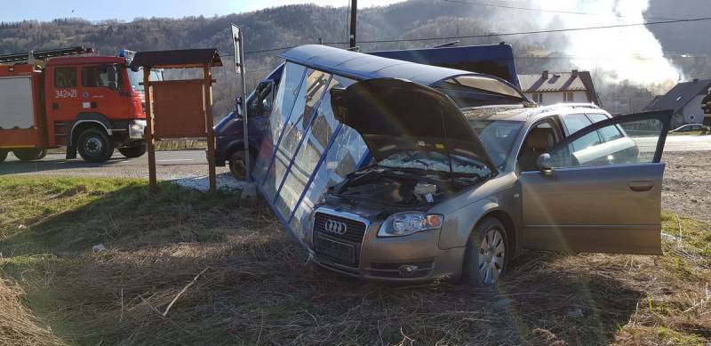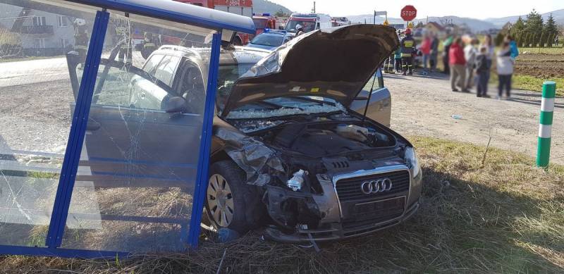 Z relacji policji wynika, że kierująca busem, którym podróżowało trzynaścioro dzieci w wieku ośmiu lat i dwóch opiekunów, w trakcie włączania się do ruchu z pobocza wymusiła pierwszeństwo i doprowadziła do zderzenia z Audi poruszającym się w tym samym kierunku. Początkowo nikt nie uskarżał się na żadne dolegliwości. Policjanci ukarali kierującą mandatem. Po zakończonych czynnościach policji okazało się, że 5 dzieci i 2 osoby dorosłe uskarżają się na bóle. Zostali przetransportowani do sądeckiego szpitala.