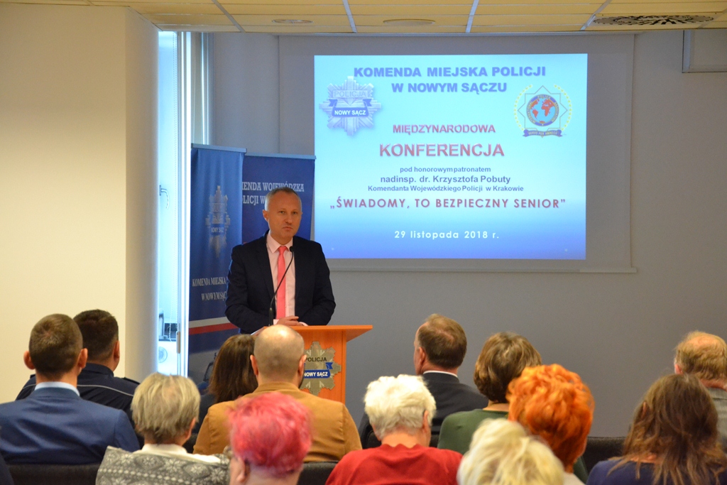 Konferencję otwarł insp. Jarosław Tokarczyk, Komendant Miejski Policji w Nowym Sączu, który przywitał zebranych i wprowadził w tematykę bezpieczeństwa grupy społecznej, do której należą seniorzy.