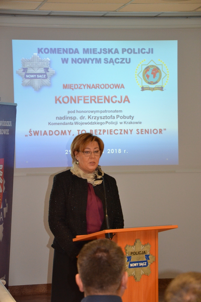 Inicjatorem i organizatorem wczorajszej konferencji był Komendant Miejski Policji w Nowym Sączu – insp. Jarosław Tokarczyk oraz Elżbieta Gargula – Przewodnicząca Międzynarodowego Stowarzyszenia Policji IPA Region Nowy Sącz. Jej celem było pogłębienie wiedzy oraz zaprezentowanie właściwych postaw i zachowań zmierzających do wyeliminowania lub ograniczenia zagrożeń dotykających seniorów.