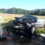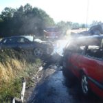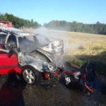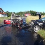 Mokra Wieś. Zderzenie dwóch osobówek. Jedno auto się zapaliło!