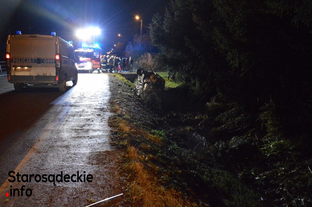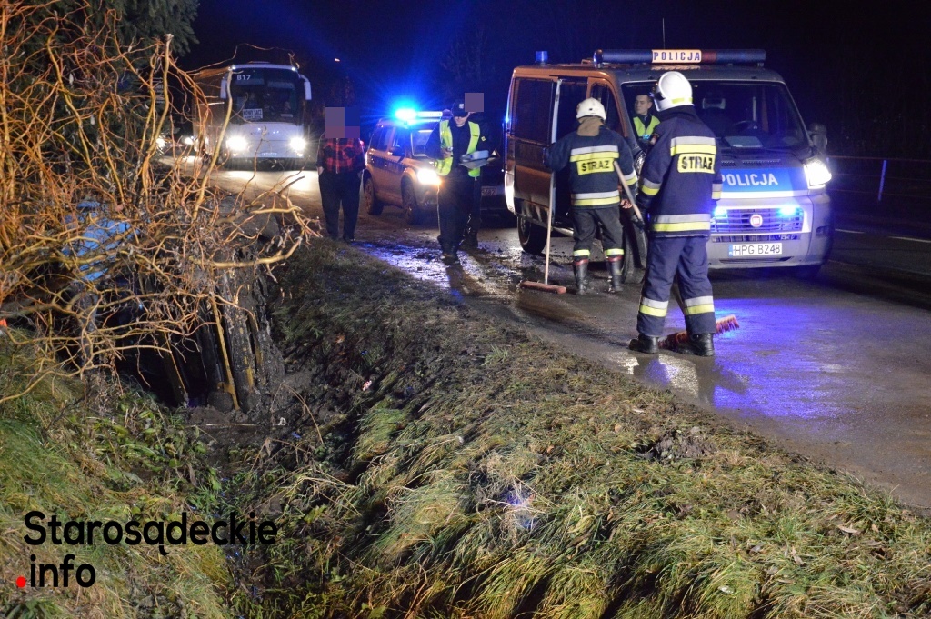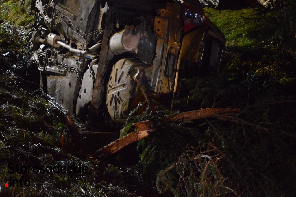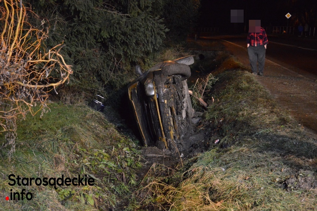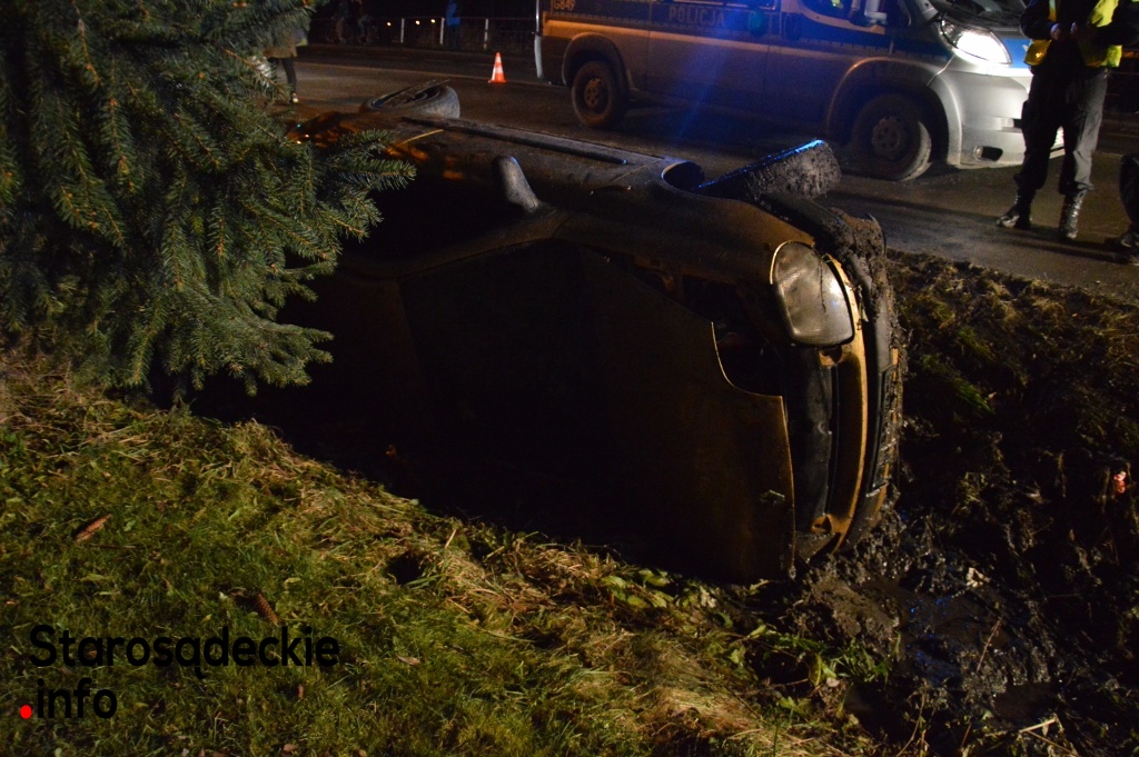 –Kierowca nie dostosował prędkości do warunków panujących na drodze. Na łuku jezdni stracił panowanie nad kierownicą, dachował i zatrzymał się w przydrożnym rowie. Dwie osoby -pasażerowie -pozostały przetransportowane do sądeckiego szpitala. Czekamy na informację nt. obrażeń -powiedział na miejscu funkcjonariusz policji.
